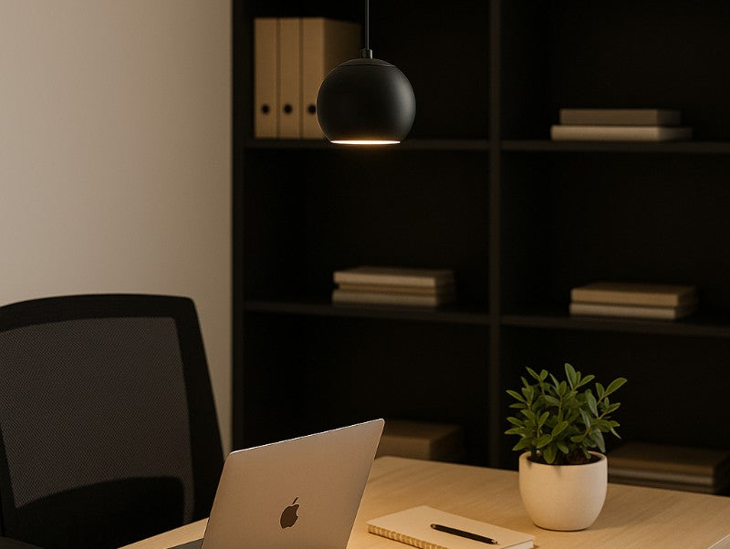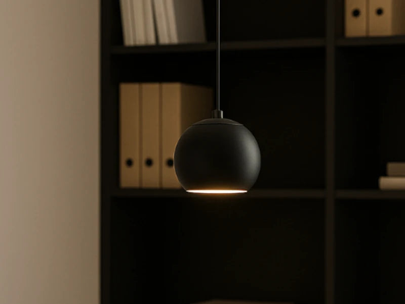 גוף תאורה FUSRO בעיצוב עגול מושלם ואור חם שעוטף את החלל, כי יש משהו בכדור מושלם שמרגיש טבעי, נעים ונכון. מנורת התלייה הכדורית לפס תאורה מגנטי שומרת על פשטות מדויקת, גוף בקוטר 7 ס״מ בגוון שחור אלגנטי, תלוי על כבל שחור באורך 1.5 מטר, שנשמט באלגנטיות מהתקרה ויוצר מוקד של שלווה וחום.