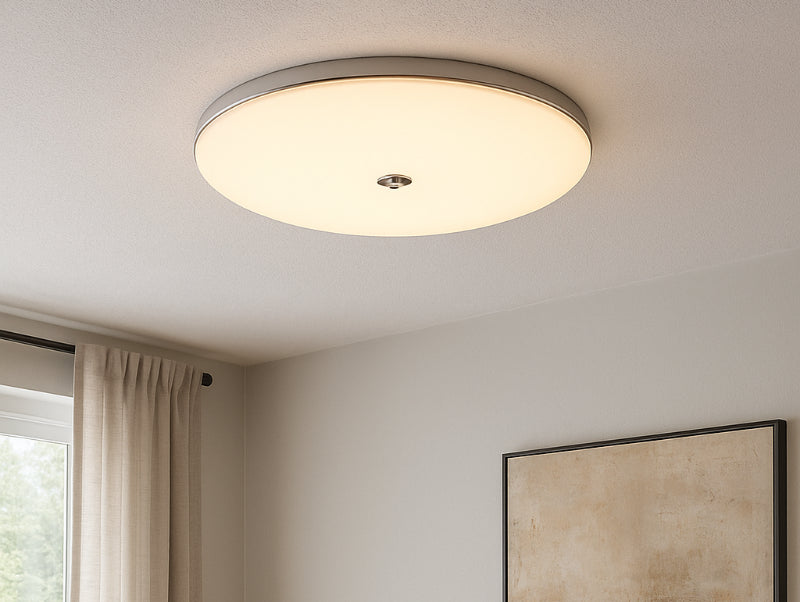 - עיצוב עגול, צמוד תקרה ויוקרתי – מראה של דיסק צף.