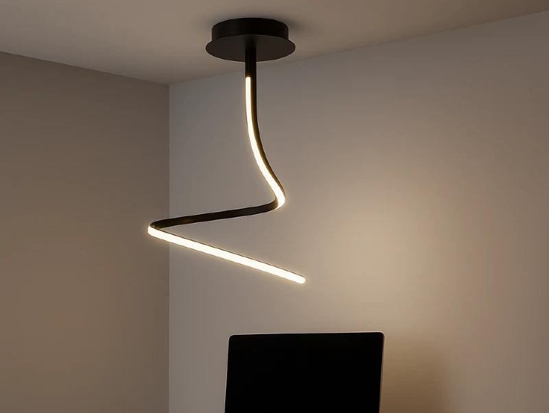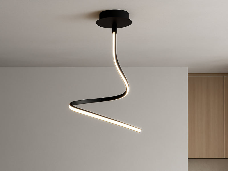 במקום גוף תקרה שטוח או צמוד מלבני, SERPINA מוסיפה תלת ממדיות בחלל: היא יורדת מהתקרה, מתעקלת וממשיכה בקו אופקי עדין. התנועה הזו שוברת את הקווים הישרים של המטבח, פינת האוכל או המסדרון, ומכניסה תחושת זרימה ורוך.