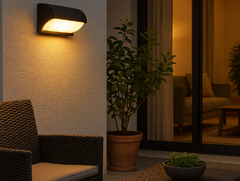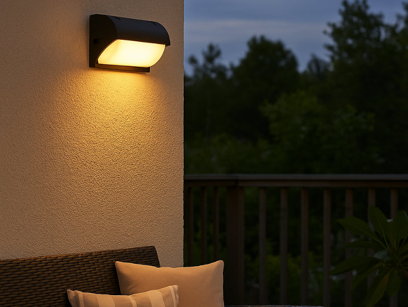 מנורת הקיר NOY C נוצרה כדי להביא עיצוב ואור באיזון מושלם. גוף מתכתי שחור עטוף קימור רך מסתיר בתוכו דיפיוזר אקרילי איכותי המפיץ אור לבן חם (3000 K) בנעימות. כל פרט בה תוכנן לעמידות בתנאי חוץ – כך שהאור שלך נשאר יציב גם ברוח, בגשם ובשמש.