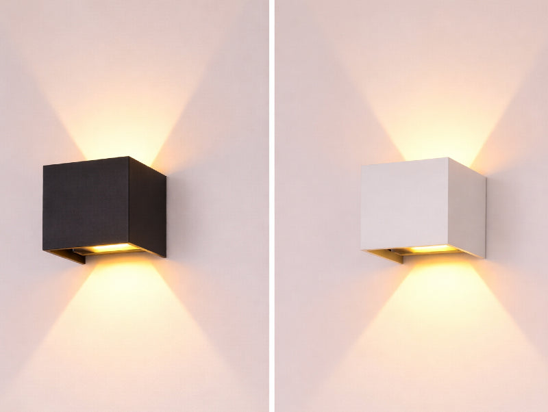 הייחוד של CUBINA הוא בשילוב בין הגיאומטריה המדויקת לבין החום שנשפך מתוכה. האור החם (3000K) “מצייר” את הקיר בלי לסנוור, והגימור הפנימי בגוון זהב מוסיף עומק ונראות עשירה במיוחד בשעות הערב. הבחירה בין גוף שחור+זהב או לבן+זהב מאפשרת להתאים את המנורה לשפה של הבית: דרמטית או נקייה.