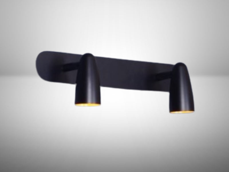 DUO Spot הוא גוף קיר דו ראשי בעיצוב מינימליסטי, שמשלב שחור מט עם נגיעות זהב ליצירת מראה יוקרתי, מדויק ונקי. כל ספוט ניתן לכיוון, כך שניתן לבחור אם להאיר בעדינות את הקיר או למקד את האור על אלמנט מסוים בחלל.