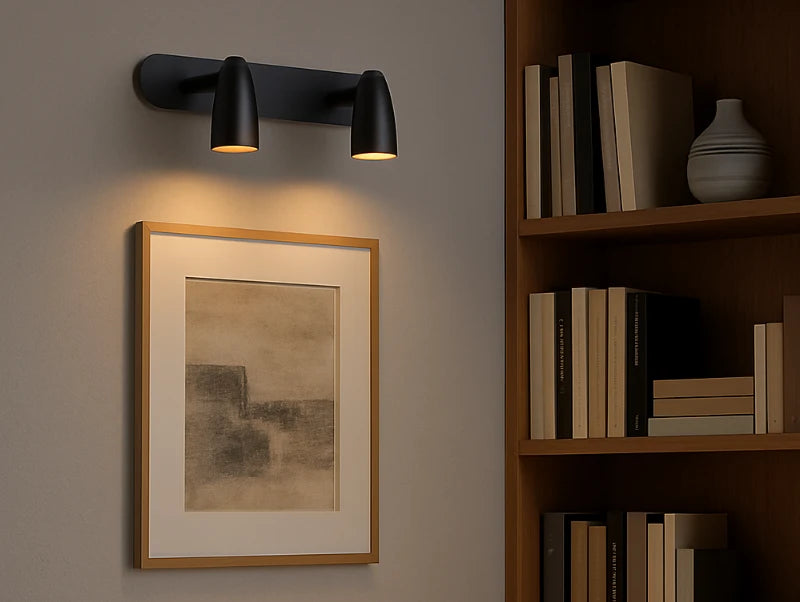 - שני ראשי ספוט מתכווננים – שליטה מלאה בכיוון האור להדגשת קירות, תמונות וטקסטורות.