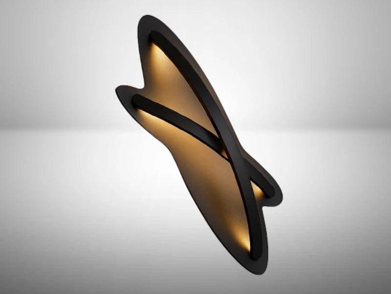 FLUXA היא מנורת קיר פיסולית הבנויה כקו זורם ומתעקל, היוצר תנועה חזותית ברורה על הקיר. הגימור השחור מדגיש את הצורה, ומעניק לחלל עומק, קונטרסט ונוכחות אדריכלית.