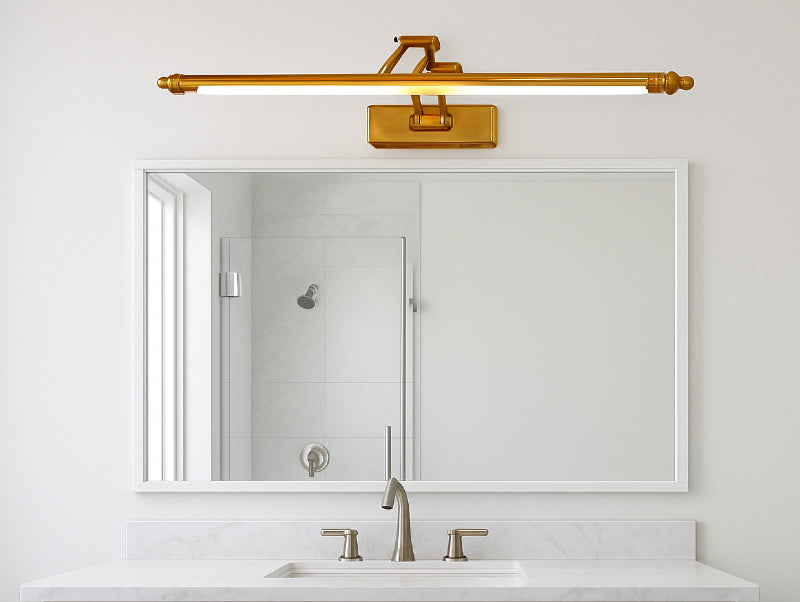 מנורת קיר RETRO BRASS היא התוספת המושלמת לכל חלל שמחפש מראה יוקרתי ואלגנטי. המנורה בעיצוב רטרו משדרת נופך של עידון ומוסיפה טאץ' של סגנון ייחודי לכל חדר. עשויה מחומרי פליז בצבע זהב מושחר, המנורה מרהיבה למראה ומושכת את העין מיידית, במיוחד כאשר היא מותקנת מעל מראה. באורך של 80 ס"מ, היא מספקת תאורה מושלמת לחדרי אמבטיה, חדרי מגורים או כל חלל אחר בבית.