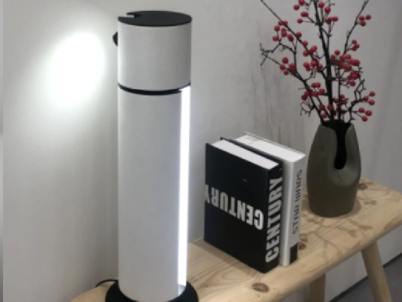 - עמוד אור שולחני שמוסיף גובה, נקיון ונוכחות שקטה.