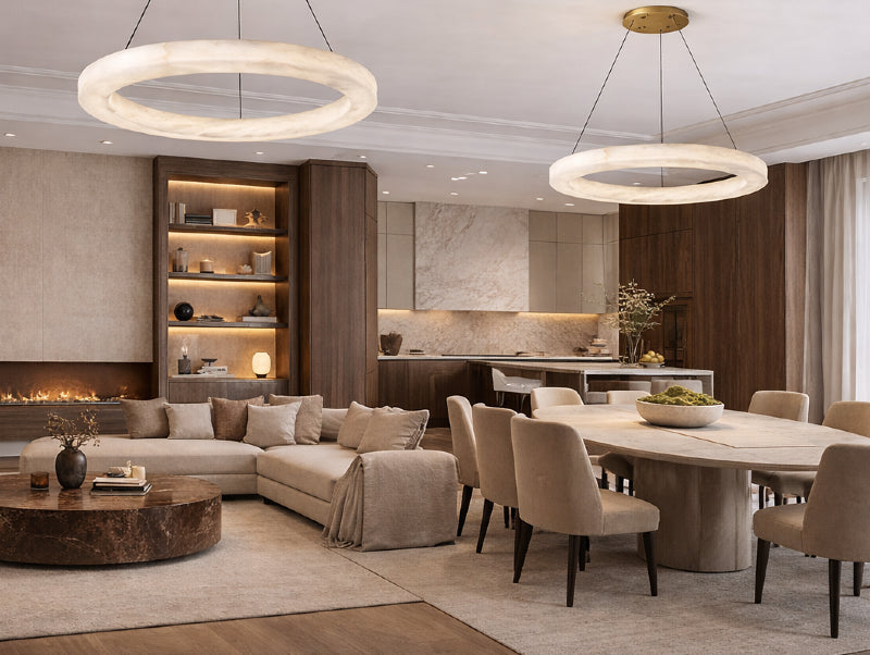 כתאורה תלויה, MARBELLA יוצרת נקודת פוקוס ברורה ומרשימה מעל אזור מוגדר. הצורה העגולה והגימור הרך מאפשרים לה להשתלב בצורה טבעית מעל שולחן אוכל, במרכז סלון או בחללי אירוח עם תקרה גבוהה. המראה בהשראת אבן מעניק תחושת פרימיום שקטה שמתאימה לעיצוב מודרני ואדריכלי.