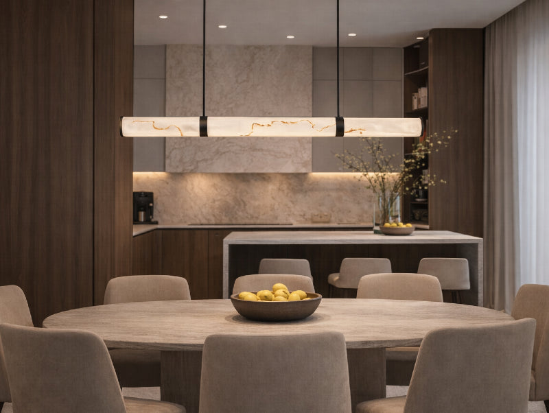 - לאילו חללים MARBLI מתאימה במיוחד? מעל שולחן אוכל, אי מטבח, אזור אירוח מרכזי ובחללים מודרניים ונקיים.