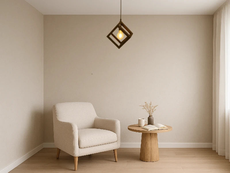 מנורת תלייה TEO היא יצירת תאורה מעוצבת בקווים חדים וגיאומטריים, המשלבת עיצוב מודרני עם אופי תעשייתי מינימליסטי. גוף התאורה בנוי כמסגרת קובייתית מעוינת בצבע שחור מט ובעלת בסיס נורה גלוי, מה שמעניק למנורה אופי מובהק ונוכחות ברורה בחלל. היא משתלבת באופן מושלם מעל אי במטבח, שולחן אוכל או בפינות בהן העיצוב זקוק לטוויסט מתוחכם ומלא שיק.